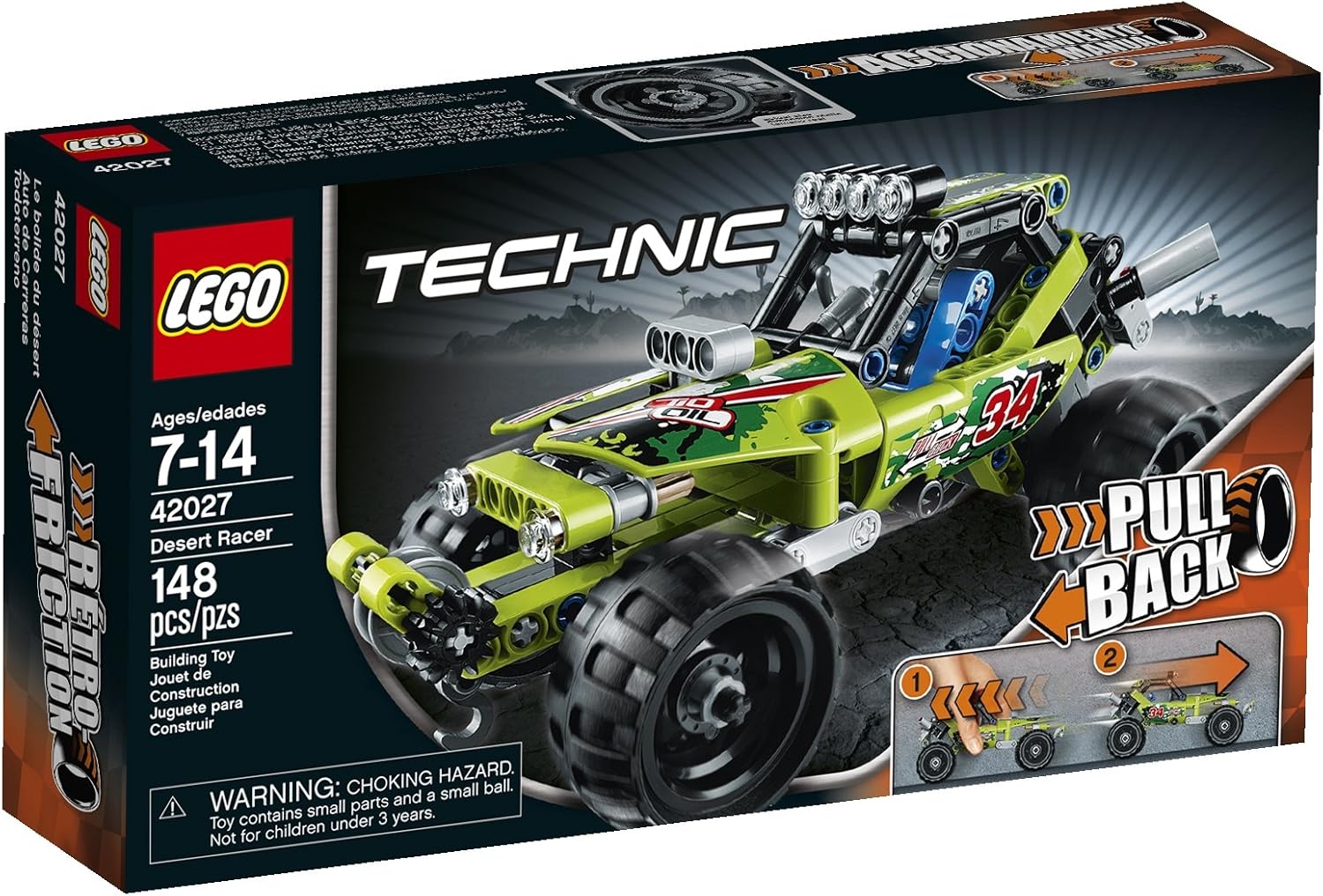 - Technic elements to develop your building skills Features a front winch, roll cage, chunky tires, cool styling and a pull-back motor